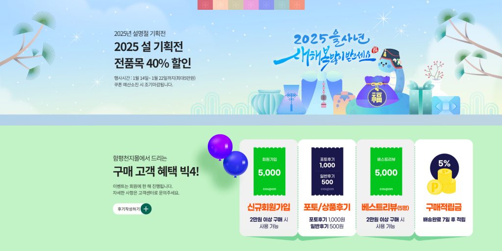 전남 함평군이 설 명절을 맞아 지역 농특산물의 소비 촉진과 온라인 판로 확대를 위해 ‘2025 함평천지몰 설 기획전’을 개최한다.