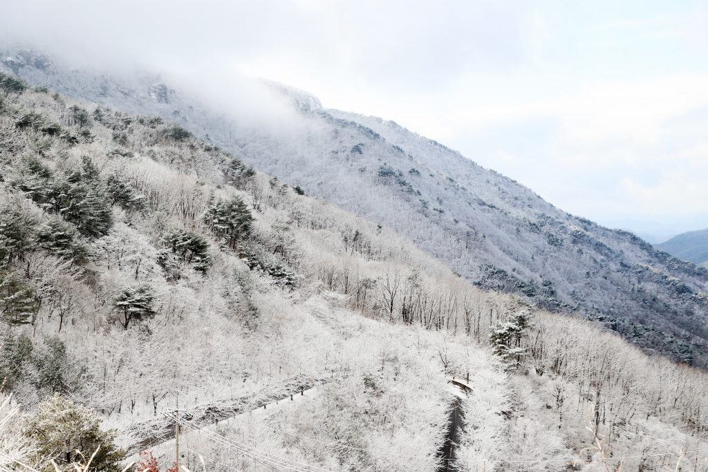 설 연휴인 27일 전국 곳곳에 대설주의보가 내려진 가운데 눈 보기가 어려운 경남 의령군 칠곡면 자굴산7부 능선에 오랜만에 눈 꽃이 피어 이 곳을 지나는 운전자들이 사진촬영을 위해 잠시 설경에 빠져든다.