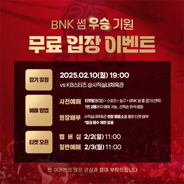 – 부산 비엔케이(BNK) 썸(SUM) 우승 기원 무료 관람 팬서비스 열려