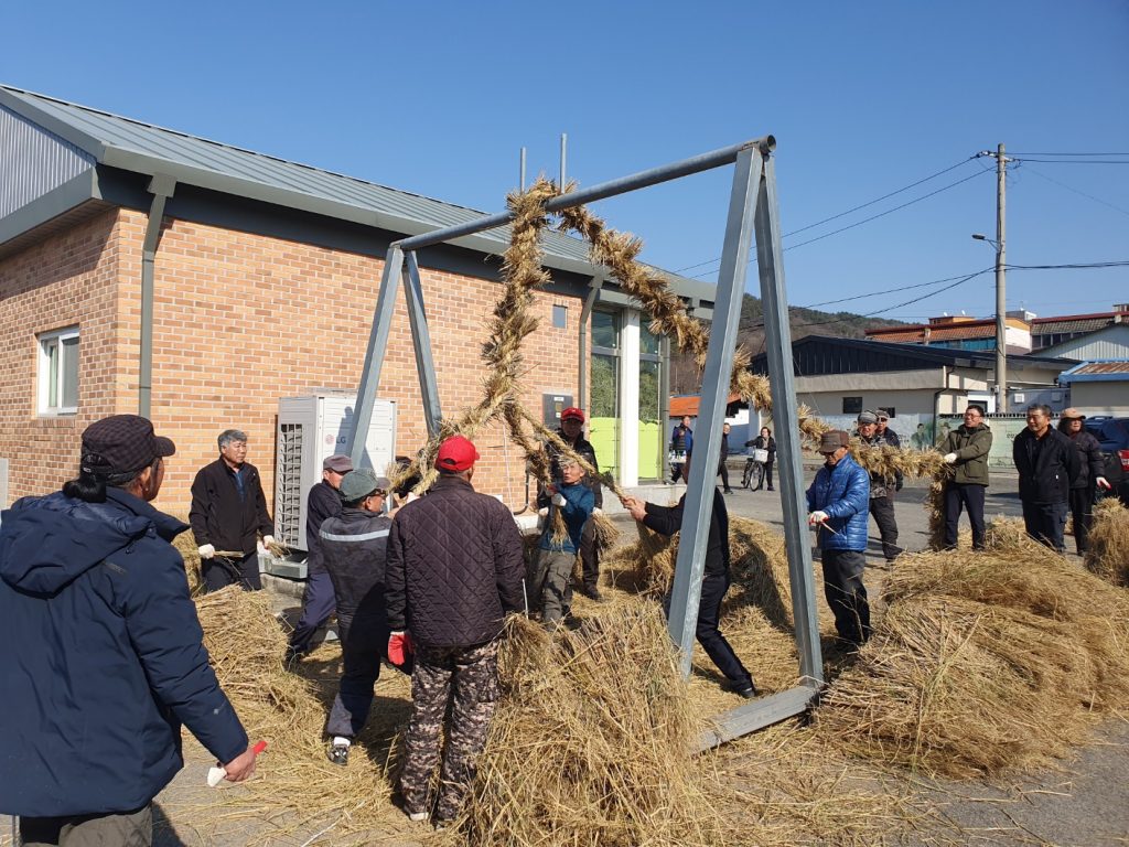 올해는 정월대보름인 2월 12일날 행해지는데, 이 행사를 위해 옥천 교평리 강줄당기기 보존회(회장 박기현)는 작년 10월경 강줄당기기의 재료로 사용할 볏짚을 청산면 교평리 일원의 논에서 거둬들였다.