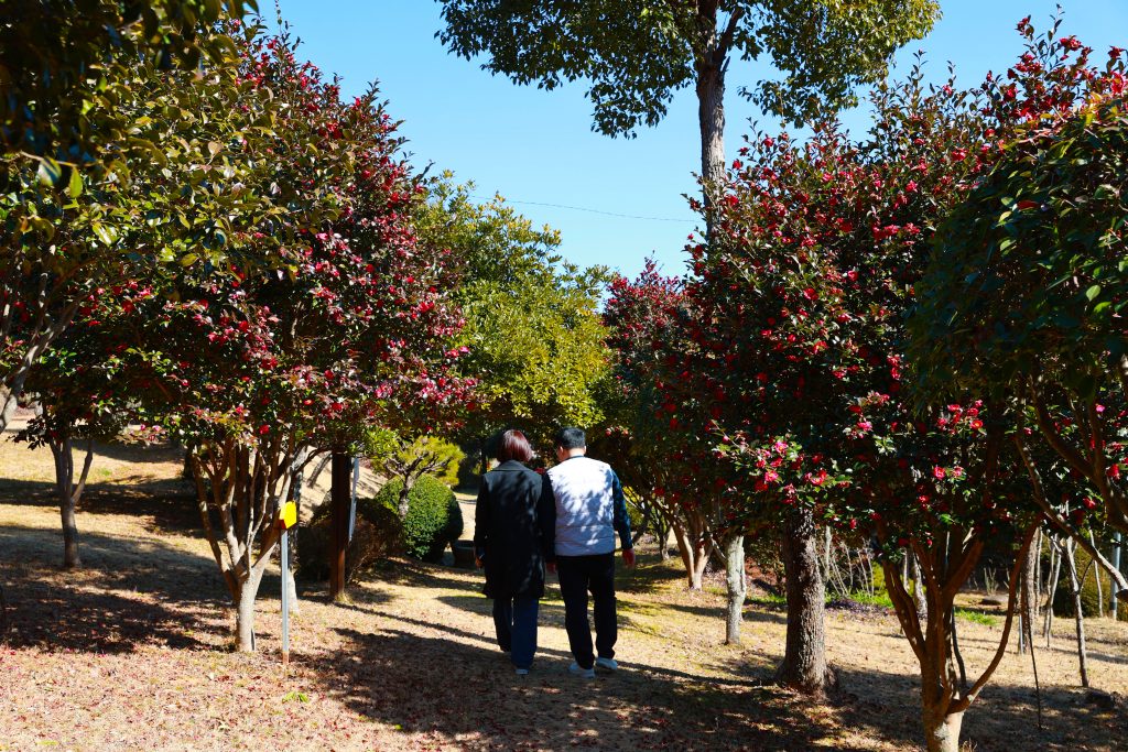 전라남도 보성군 득량면에 있는 초암정원의 애기동백(산다화)이 만개하여 방문객들의 발길을 사로잡고 있다.