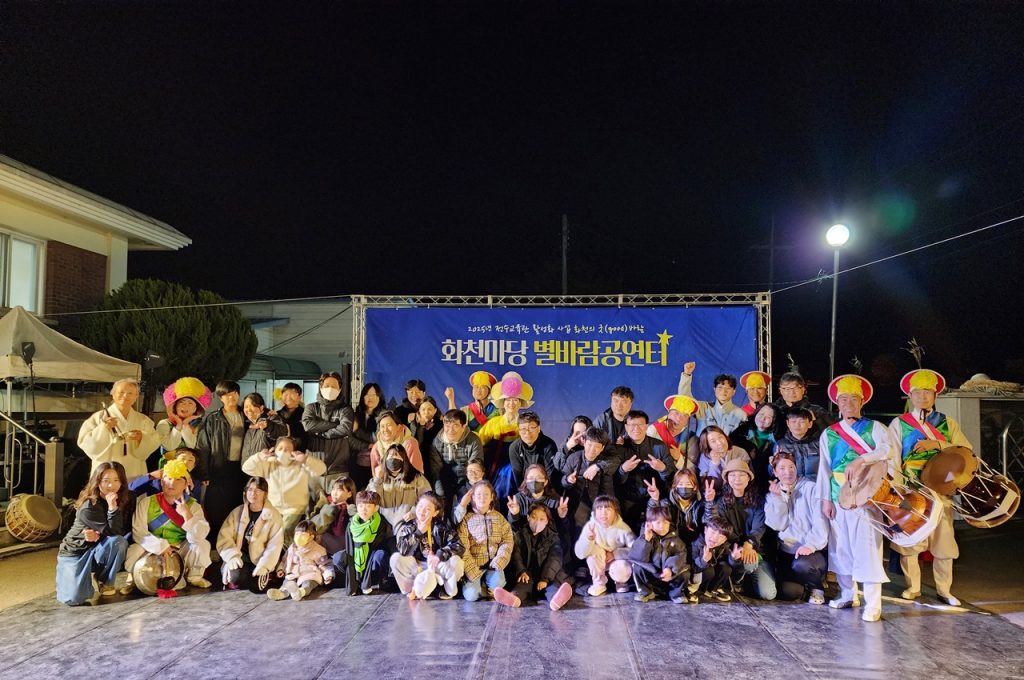 저녁에는 참여자들이 모여 앉아 화천마을의 밤하늘 아래에서 ‘화천마당 별바람 공연터’의 특색있는 공연 관람을 했다. 화천마을의 사자춤과 전통 마술쇼, 함안화천농악 연희 공연과 대동놀이로 참여자 뿐만 아니라 마을 어른들과 인근 외국인 노동자들까지도 함께 자리를 즐겼다.