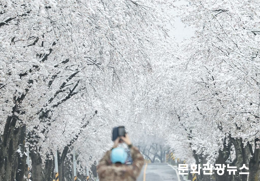 현장을 찾은 일부 주민과 방문객들은 예상치 못한 설경에 발걸음을 멈추고 사진을 남겼다. “벚꽃과 눈을 동시에 보는 건 처음”이라며 휴대전화로 풍경을 담는 모습도 이어졌다.