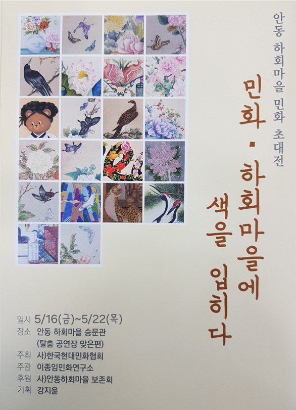 사단법인 안동하회마을보존회(이하 보존회)는 오는 16일~22일 하회마을 내에 위치한 승문관에서 ‘안동 하회마을 민화 초대전 – 민화, 하회마을에 색을 입히다’를 개최한다.
