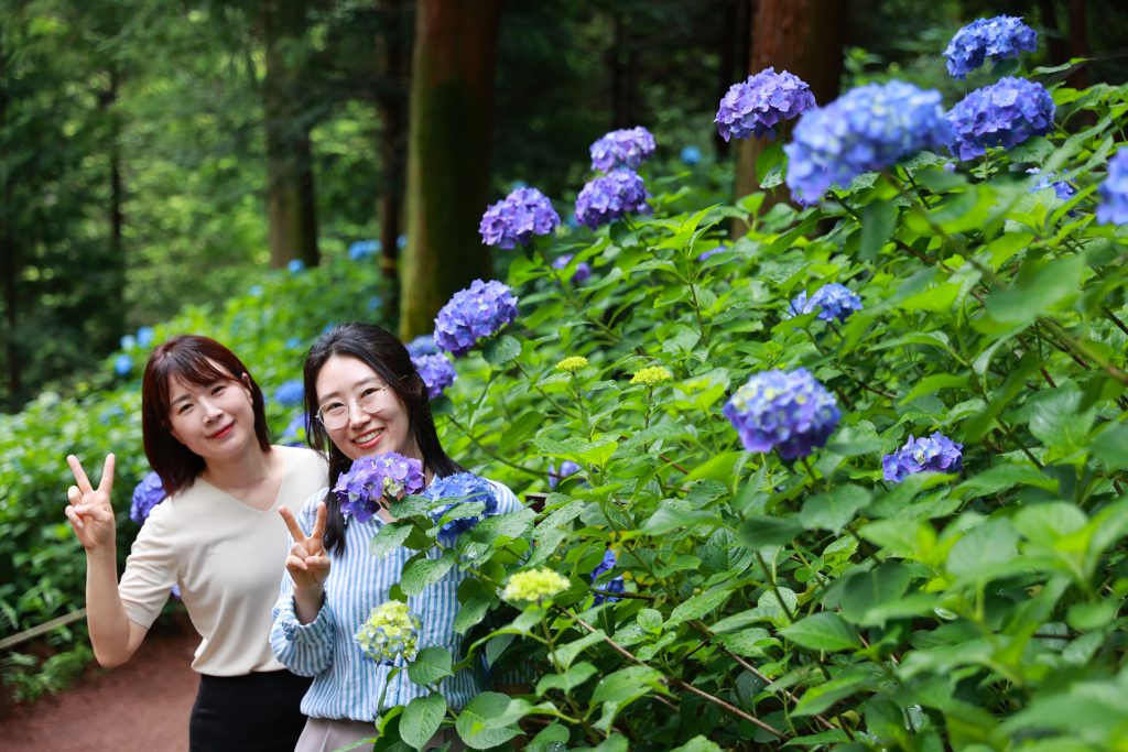 아직 본격적인 만개 시기 전임에도, 윤제림은 청량한 공기와 꽃내음으로 일찌감치 여름 정취를 품었다. 수국의 향연은 7월 중순까지 이어질 것으로 예상돼, 무더위를 피해 자연 속에서 피서를 즐기고자 하는 이들에게 안성맞춤이다.