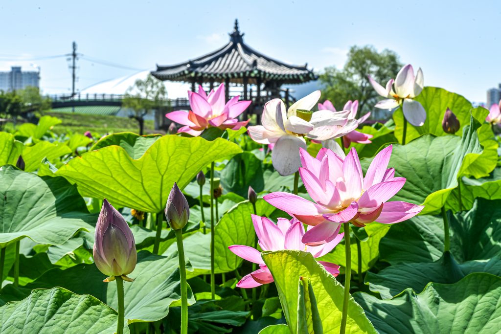 장길수 함안연꽃테마파크 관리팀장은 “현재 30% 정도 개화가 진행된 상태로, 늦은 오후 빛이 부드럽게 깔릴 때가 사진 촬영 최적”이라며 “주말에는 해설사와 함께하는 생태 탐방 프로그램도 운영해 연꽃의 성장 과정을 직접 보고 배울 수 있다”고 전했다.