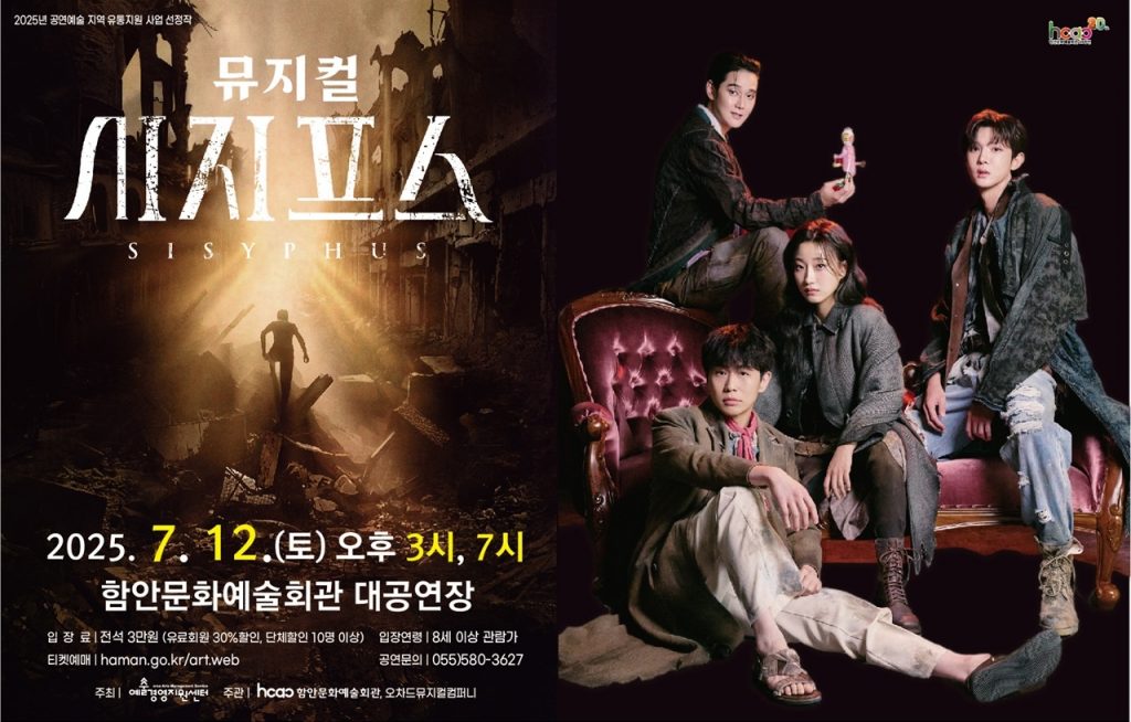 오는 12일, 함안문화예술회관 대공연장에서 창작 뮤지컬 ‘시지프스’가 무대에 오른다. 오후 3시와 7시, 두 차례 열리는 이번 공연은 지역 관객들에게는 흔치 않은 고밀도의 창작뮤지컬을 만날 수 있는 기회다.