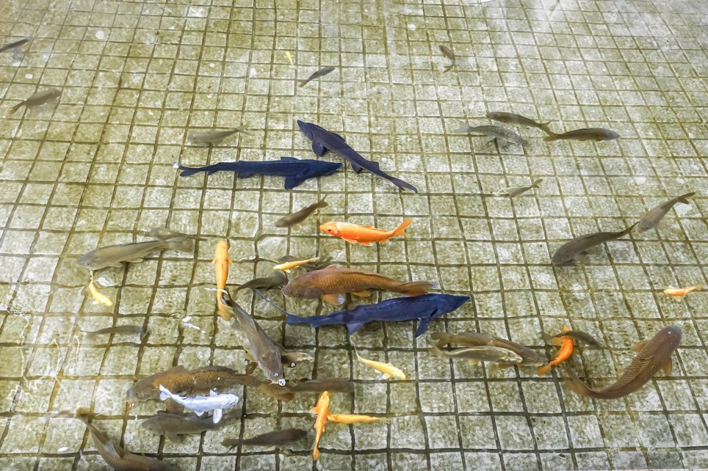 철갑상어는 깊은 강바닥처럼 햇빛이 적은 환경을 선호하는 습성이 있어, 연못 왼편의 집모양 토기 조형물 그늘 아래에서 자주 목격된다. 물속을 가르며 부드럽게 움직이는 모습은 마치 고대 생물의 한 장면을 보는 듯하다.