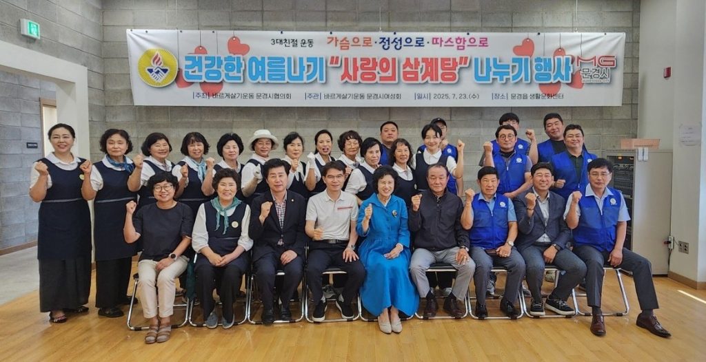 바르게살기운동 문경시협의회는 지난 18일 점촌3동 이화 경로당, 23일 문경읍 생활문화센터에서 ‘사랑의 삼계탕 나누기’ 봉사활동을 펼쳤다. 이번 행사는 바르게살기운동 문경시여성회 주관으로 마련됐으며, 청년회를 비롯한 회원 30여 명이 함께 정성을 모았다.