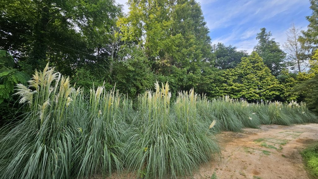 팜파스그라스는 남미 아르헨티나와 브라질 등이 원산지인 벼과의 여러해살이풀로, 부드럽고 풍성한 깃털 모양의 이삭이 특징이다. 키가 2~3m까지 자라는 이 식물은 초가을 선선한 날씨에 절정을 이루며, 이국적인 풍경을 자아내 ‘풀꽃의 여왕’으로도 불린다.