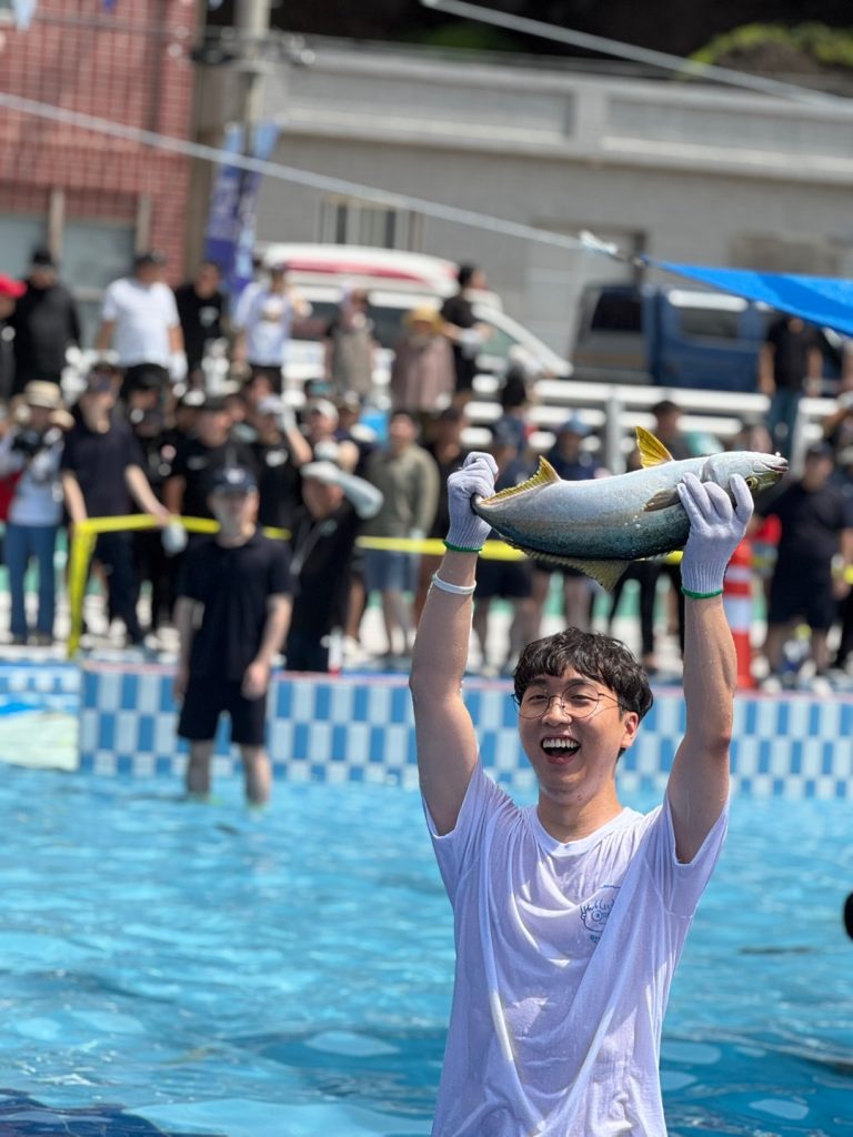 이튿날인 5일에는 축제 최초로 남양해수풀장에서 ‘방어 잡기 체험’이 열렸다. 빠르게 움직이는 방어를 맨손으로 잡아보는 도전적인 체험은 참가자들의 승부욕을 자극했고, 구경하는 관광객들 역시 함성과 응원으로 현장을 메웠다.