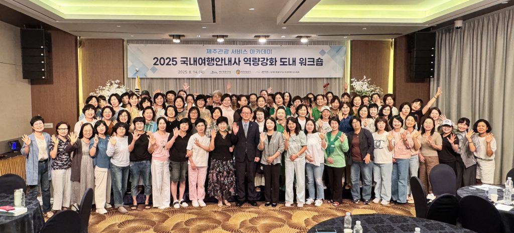 제주를 찾는 내국인 관광객의 만족도를 높이기 위해 현장 안내를 담당하는 국내여행안내사들이 한자리에 모였다. 제주특별자치도와 제주관광공사는 14일, 도내에서 제주지역 국내여행안내사 100여 명을 대상으로 역량 강화 교육을 진행했다.