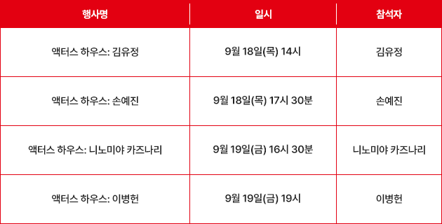 까르뜨 블랑슈·스페셜 토크·액터스 하우스 등 풍성한 프로그램 마련