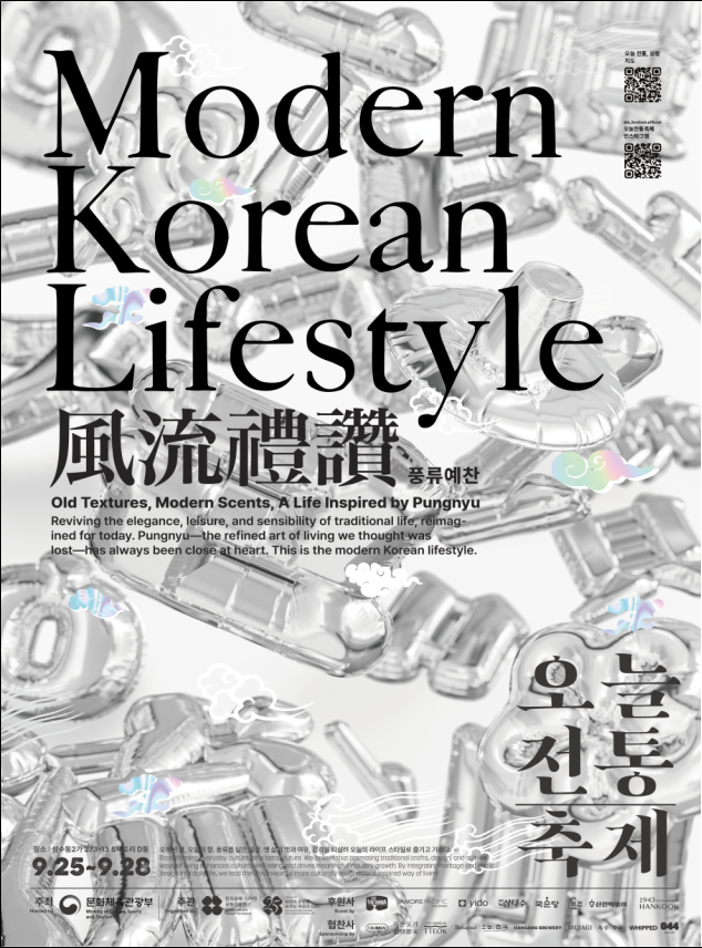 1층 행사장에서는 전통을 현대적 시각으로 조명하는 기획전시 ‘모던 코리안 라이프스타일’을 열고, 한복·한식·공예 등 50여 개 업체가 참여하는 ‘오늘전통 팝업’ 부스를 통해 상품 체험과 구매 기회를 제공한다. 글라스하우스에서는 사용하지 않는 한복을 새 한복으로 교환하는 ‘21% 한복잔치’ 장터와 매듭공예 체험, 한복 재활용 워크숍 등도 운영된다.
