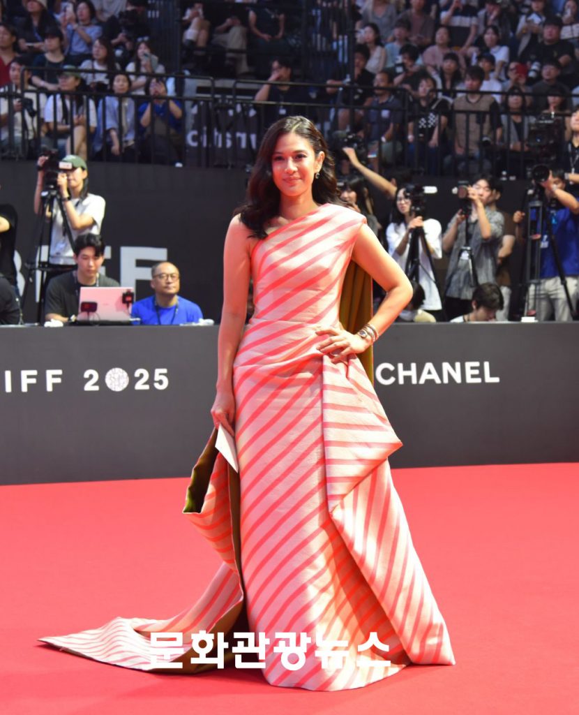 이어 부산국제영화제 심사위원단이 소개됐다. 나홍진 심사위원장을 비롯해 양가휘, 난디타 다스, 마르지예 메쉬카니, 코고나다, 율리아 에비나 바하라, 한효주 등 7명의 심사위원이 무대에 올랐다.