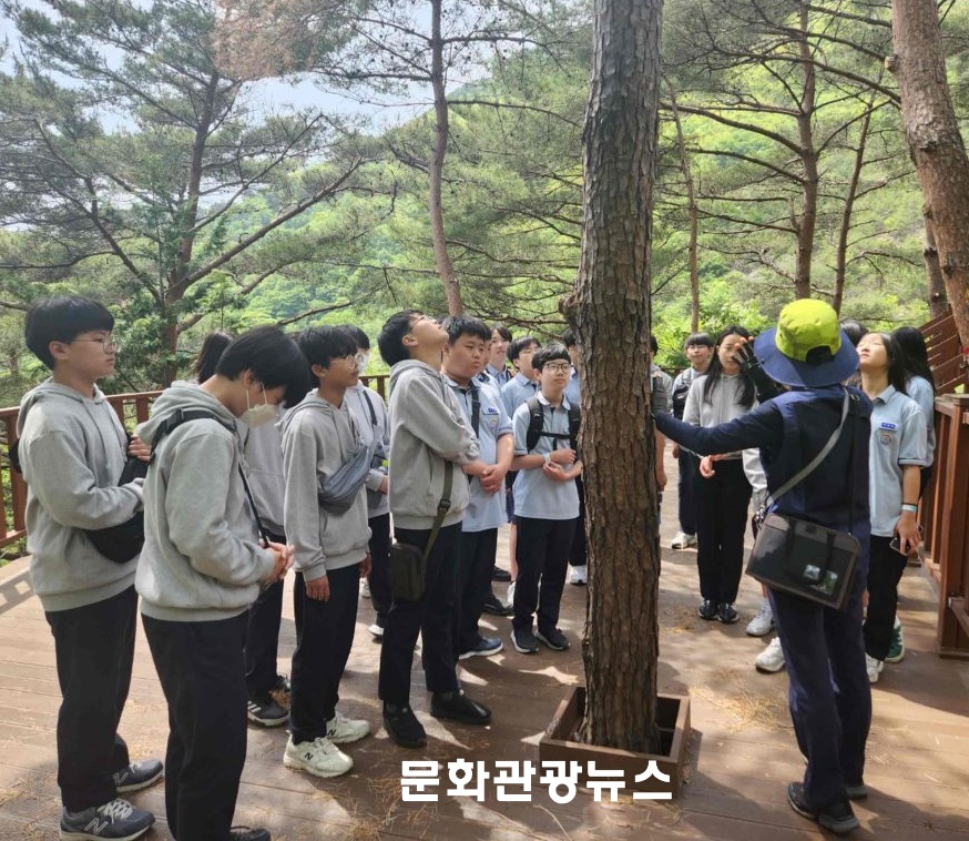 체험학습은 숲 해설과 목공예(자연물 만들기)로 구성됐다. 밀양교육지원청과 협업해 교과 과정과 연계된 현장학습으로 진행되며, 학생들이 숲속 생태를 직접 체험하며 교실에서 배운 내용을 더욱 쉽게 이해할 수 있도록 돕는다. 특히 숲 해설은 전문 자격을 갖춘 해설사가 연령대에 맞춰 맞춤형으로 진행해 2023년 도입 이후 큰 호응을 얻고 있다.