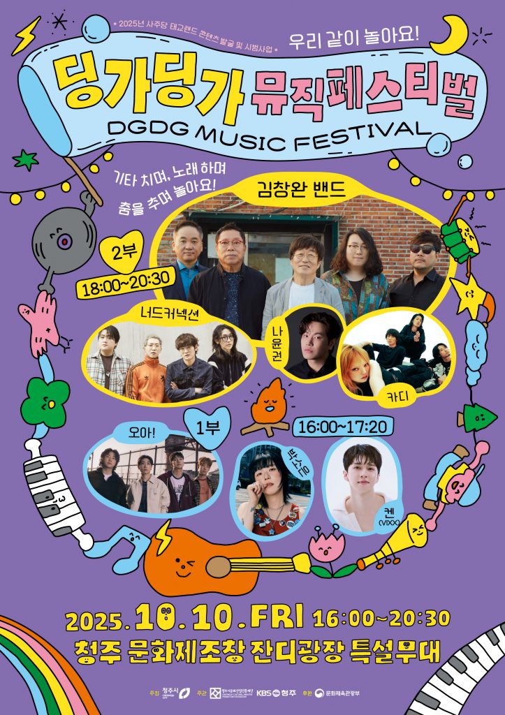 청주시와 청주시문화산업진흥재단은 오는 10일 오후 4시 문화제조창 잔디광장에서 ‘우리 같이 놀아요! 딩가딩가 뮤직페스티벌’을 개최한다고 1일 밝혔다. 이번 행사는 2026년 개관 예정인 사주당 태교랜드의 의미를 널리 알리고 시민 공감대를 확산하기 위한 사전 프로그램이다.
