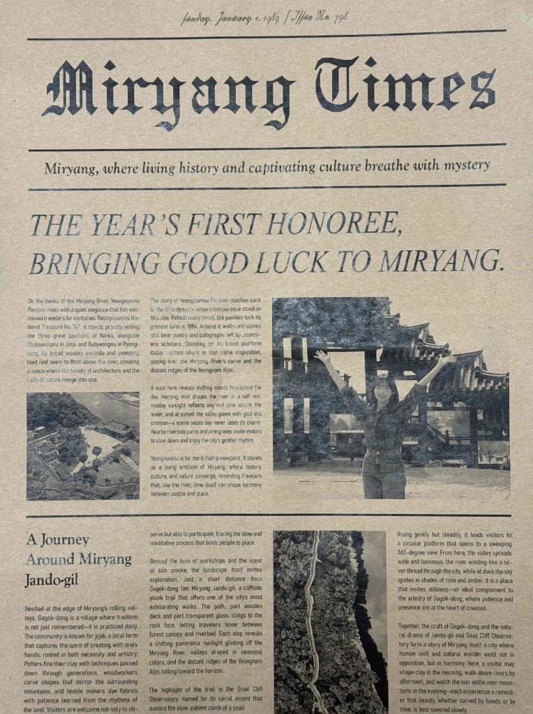 이경숙 밀양시 관광진흥과장은 “신문 속 주인공이 되는 특별한 경험을 통해 관광객이 밀양의 매력을 새롭게 느끼고, 다시 찾고 싶은 도시로 기억되길 바란다”고 말했다.