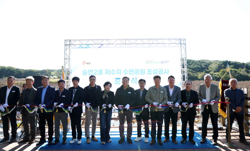 태안군은 지난 27일 안면읍 승언리에서 ‘승언2호 저수지 수변공원 준공식’을 열고 공원 개방을 공식 알렸다. 이날 행사에는 가세로 군수를 비롯한 군 관계자와 군의원, 지역 주민 등이 참석해 완공의 기쁨을 함께했다.