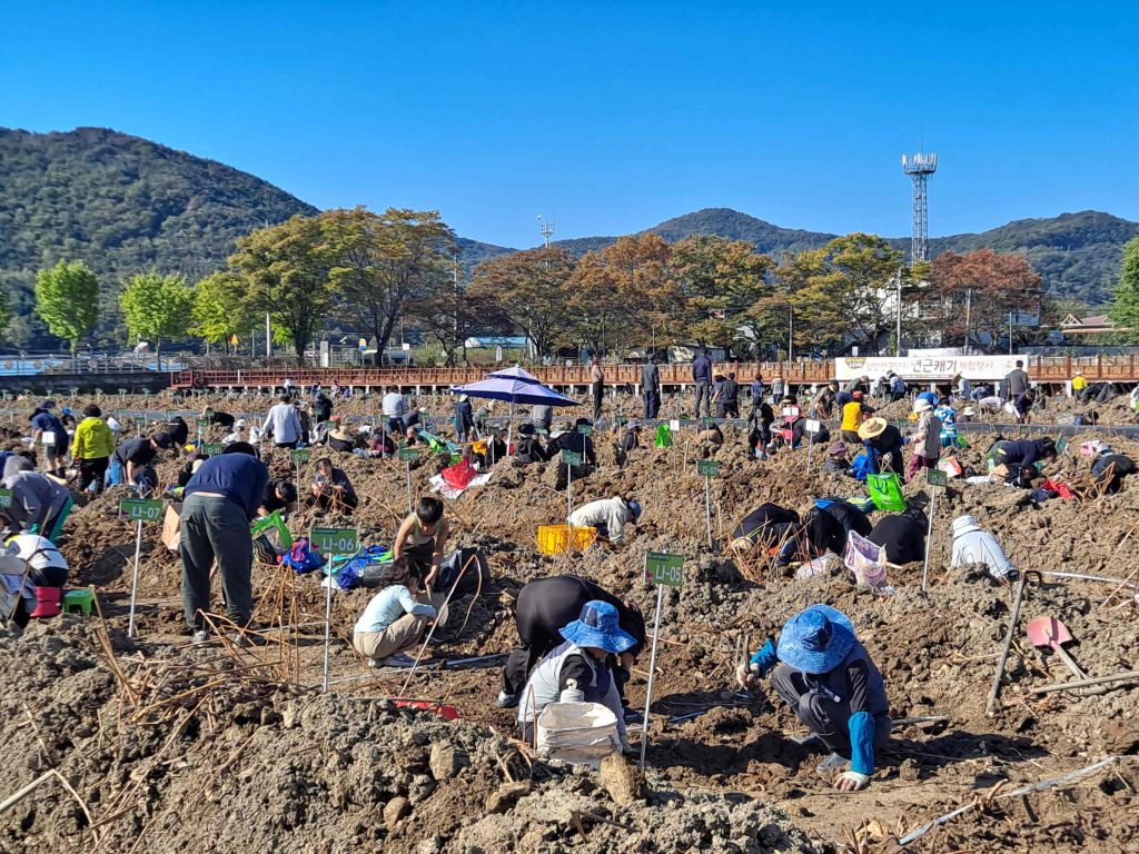 약 1만 8,000평 규모의 밀양연꽃단지는 여름이면 만개한 연꽃으로 장관을 이루고, 가을에는 연근캐기 체험을 통해 또 다른 즐거움을 선사한다. 이번 행사에서는 참가자들이 직접 수확한 연근을 가져가며 수확의 기쁨을 함께 나누는 시간도 마련됐다.