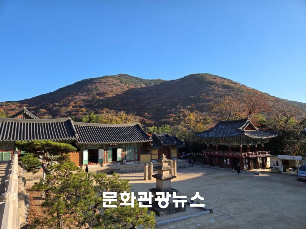 청명한 하늘 아래 붉고 노란 단풍이 금정산 자락을 물들이며 범어사를 장식하고 있다.
