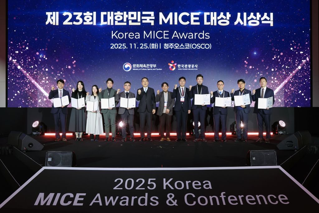 한국관광공사는 충북 청주 오스코(OSCO)에서 26일까지 ‘2025 대한민국 MICE 대상 및 컨퍼런스’를 개최한다. ‘새로운 시대, MICE 산업의 변화’를 주제로 열린 이번 행사는 한 해 동안 MICE 산업 발전에 기여한 유공자를 시상하고, 급변하는 환경 속에서 산업의 미래 방향을 모색하기 위해 마련됐다.