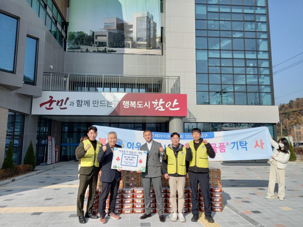 함안산성라이온스클럽(회장 서진혁)은 26일 김치 3㎏ 70상자와 라면 50상자를 칠원읍행정복지센터에 기탁했다고 밝혔다. 기탁된 물품은 관내 취약계층 가정에 전달돼 따뜻한 겨울나기를 돕는 데 사용될 예정이다.