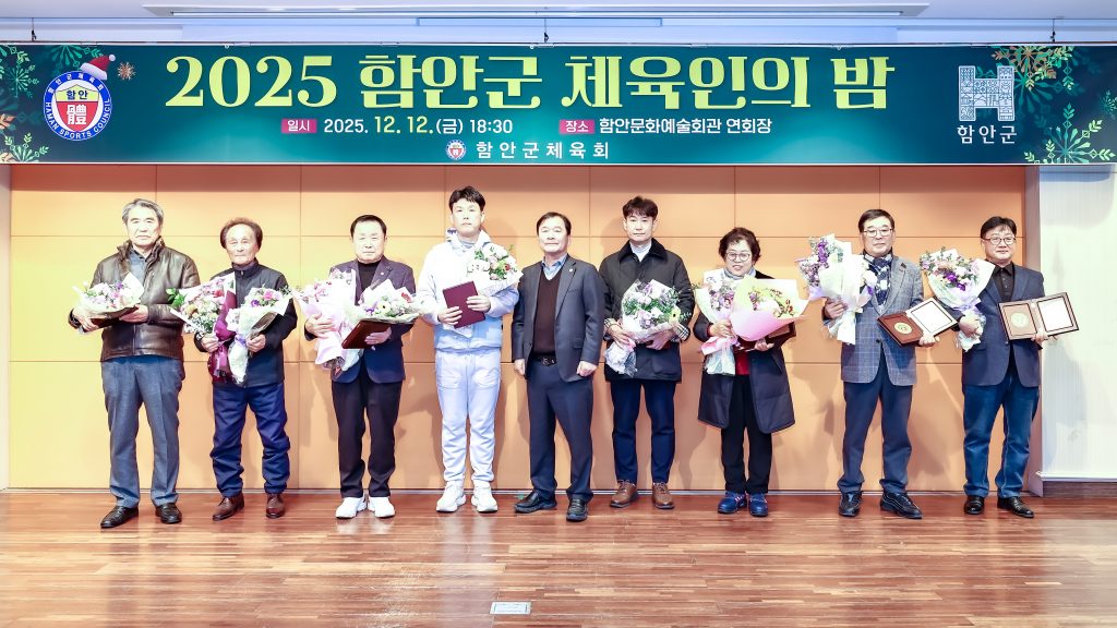 함안군체육회는 지난 12일 함안문화예술회관에서 ‘2025년 함안군 체육인의 밤’ 행사를 열고 한 해 군 체육 발전 성과를 공유하며 내년 제65회 경남도민체육대회의 성공 개최를 다짐했다.