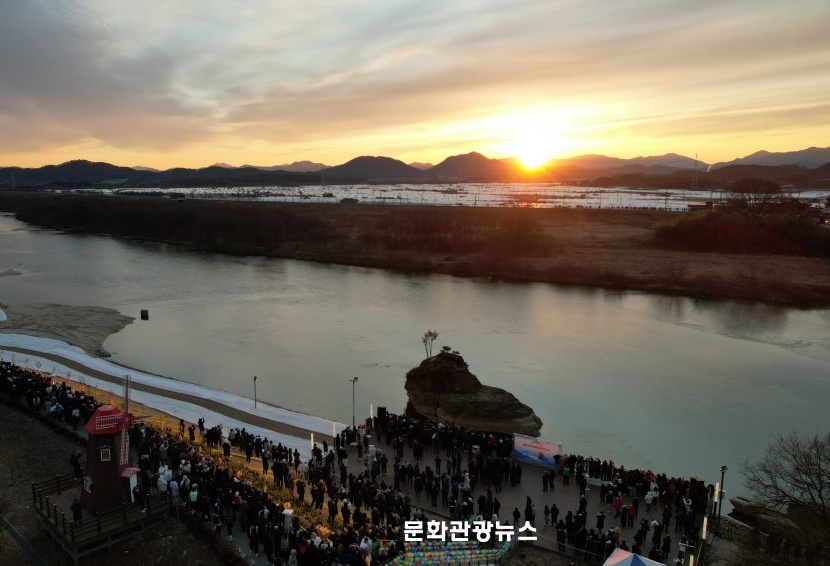 의령군 정암철교 아래에 위치한 솥바위 일원에는 새해 희망을 품은 시민과 관광객 약 3천 명이 모여 일출을 기다리며 이른 아침부터 북적였다. 이는 지난해 해맞이 행사에 모인 약 1천 명보다 세 배가량 늘어난 규모다.