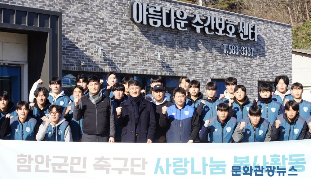 함안군은 함안군민축구단이 지난 3일 2026시즌 첫 공식 일정으로 가야읍에 위치한 아름다운 동산 주간보호센터에서 사랑 나눔 봉사활동을 실시했다고 밝혔다.
