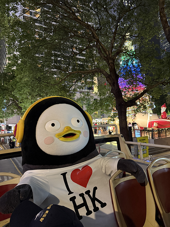 홍콩의 대표적인 야경 명소도 찾았다. 펭수는 ‘하버시티 오션 터미널 데크’를 방문해 빅토리아 하버와 홍콩섬, 구룡 일대를 한눈에 바라보며 홍콩의 일몰 풍경을 전했다. 이곳은 270도 파노라마 전망을 자랑하는 명소로, 현지인과 관광객 모두의 발길이 이어지는 장소다.