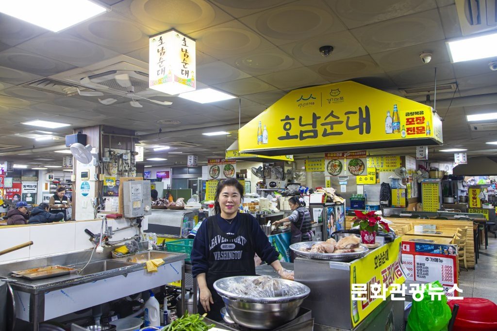호남순대는 1980년대 중반부터 이 자리를 지켜왔다. 처음에는 순대만을 판매했지만, 이후 순댓국을 함께 내놓으며 손님들의 발길이 더욱 잦아졌다. 세월이 흐르면서 메뉴도 자연스럽게 늘었고, 지금은 순대곱창볶음이 가장 많이 찾는 대표 메뉴로 자리 잡았다. 시장의 변화와 함께 성장해온 셈이다.
