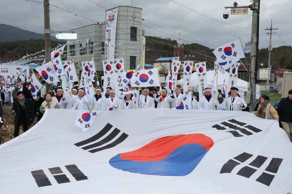 1일 오전, 포항시 북구 송라면 대전리. 마을 입구부터 손에 태극기를 든 시민들의 발걸음이 이어졌고, 바람에 펄럭이는 깃발 사이로 “대한독립 만세” 함성이 힘차게 울려 퍼졌다. 107년 전 이 땅에서 터져 나왔던 외침이 다시 살아났다.