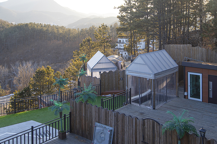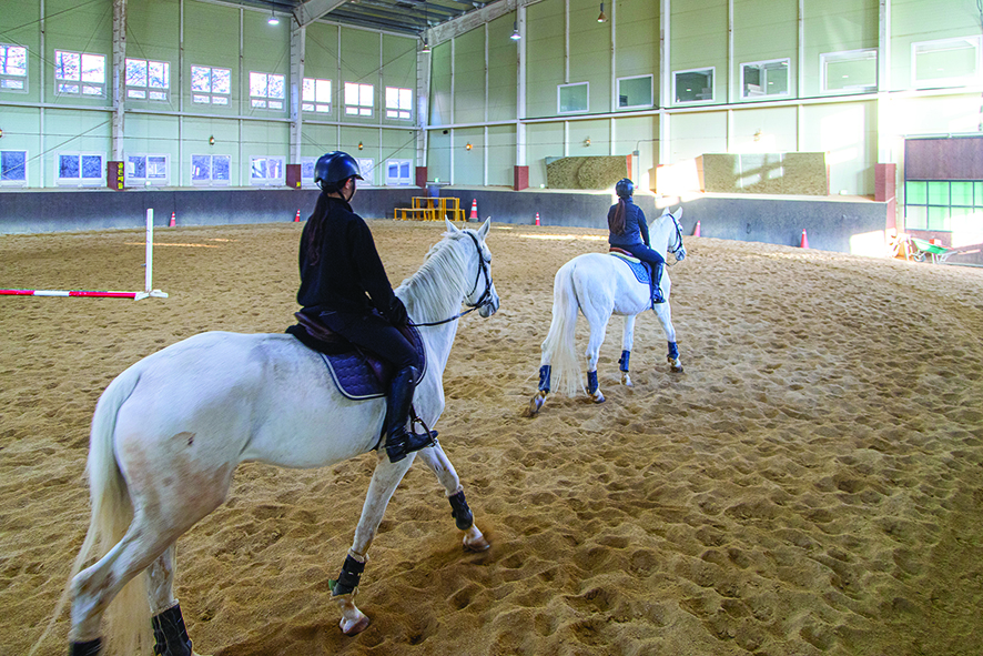 국제 규격 실내마장과 야외마장을 갖추고, 공인 자격 교관이 상주해 안전한 교육이 가능하다. 초보자를 위한 ‘포니등급’ 교육과 등급 심사도 운영해 입문자에게 적합하다. 승마장 뒤편 언덕에는 풀빌라와 캠핑장이 있어 노천탕에서 겨울 캠핑을 즐길 수 있다.