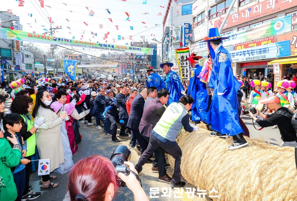 이튿날 아침에는 고유제를 시작으로 청룡·백호 의장행렬이 도로를 따라 입장하며 본격적인 행사 분위기를 형성한다. 전통 의상을 갖춰 입은 행렬이 지나가자 관람객들은 카메라를 들고 연신 셔터를 누르며 현장을 기록하는 모습이다.