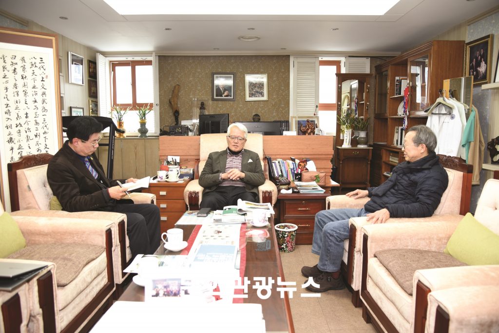 본지는 (사)봉생문화재단 의료원장 집무실에서 정 의장을 만나 100만 평 공원 운동의 실질적 리더인 김승환 운영위원장(동아대 명예교수)과 함께 인터뷰를 진행했다.
