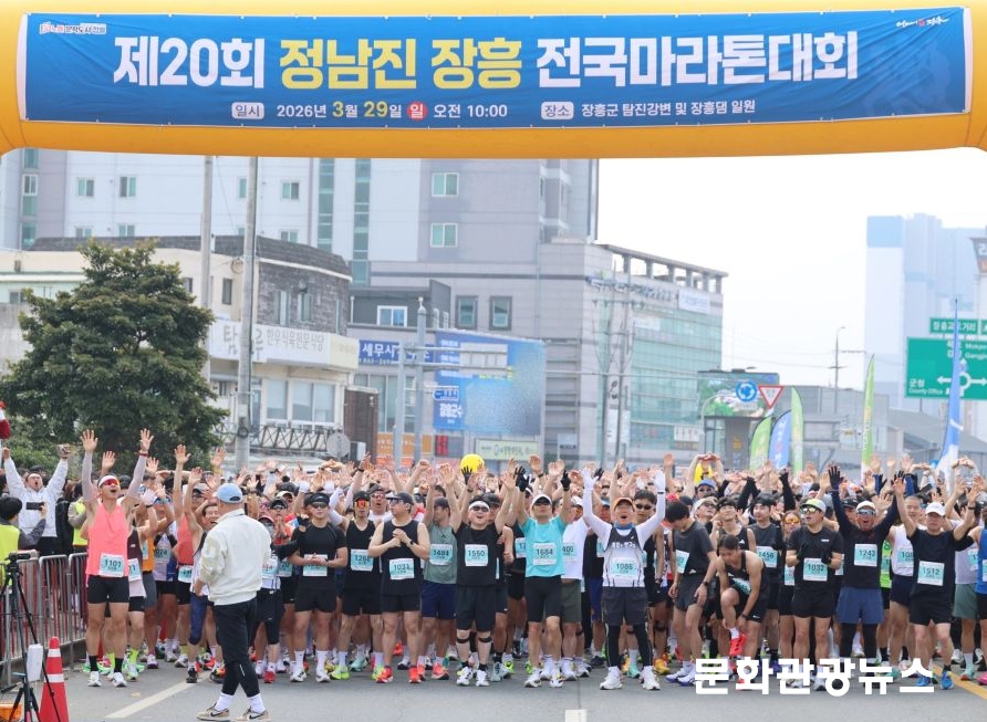 29일 오전 전남 장흥군 탐진강변. 출발선에 선 참가자들 사이로 가벼운 스트레칭과 함께 긴장감 섞인 웃음이 오갔다. 출발 신호가 울리자 형형색색 러닝복을 입은 마라토너들이 강변을 따라 힘차게 내달리며 봄기운을 가르기 시작했다.
