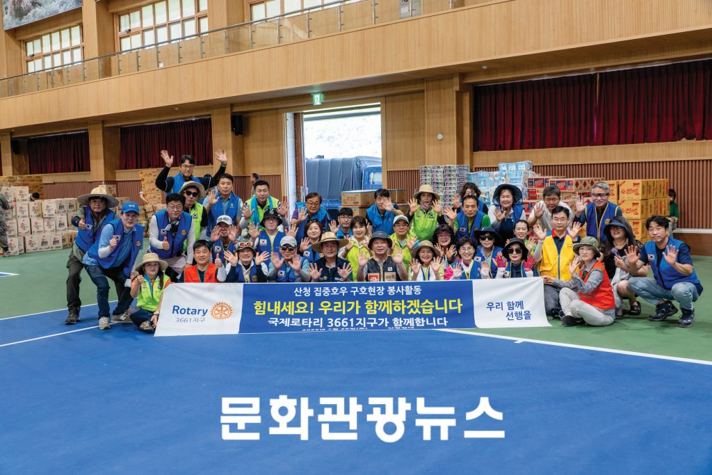 국제로타리 3661지구(부산)와 3590지구(진주)가 지난 26일 경남 산청 지역의 수해 피해 복구 현장을 찾아 구호물품을 전달하고 자원봉사에 힘을 보탰다. 두 지구의 연합은 무더위 속에서도 지역 회복을 위한 온정의 손길을 아끼지 않았다.