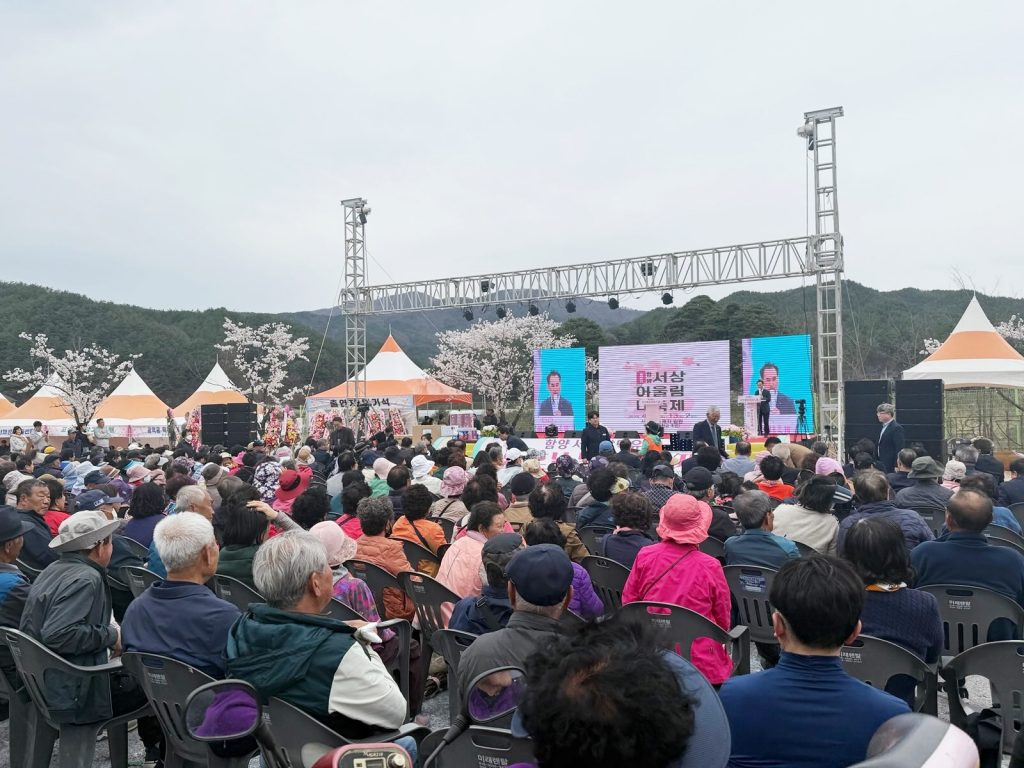 오후에는 초청 가수 공연과 함께 ‘남덕유산 벚꽃 콘서트’가 열려 축제의 열기를 이어간다. 무대 앞에는 돗자리를 펴고 앉아 공연을 즐기려는 관람객들이 모여들며, 봄날의 야외 공연장이 펼쳐질 전망이다.
