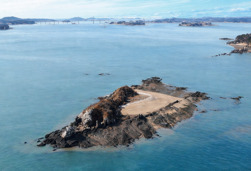 섬의 중심부는 굵은 모래와 자갈이 어우러진 단단한 지형을 이루고 있으며, 북쪽으로는 완만하게 펼쳐진 평지가 이어진다. 반면 가장자리는 전혀 다른 얼굴을 보여준다. 거무튀튀한 갯바위가 울퉁불퉁하게 둘러싸고 있어 거친 바다의 시간을 고스란히 품고 있다. 특히 남쪽 바위산 일대에서는 파도와 바람이 만들어낸 해식절벽과 동굴, 그리고 바다 위에 홀로 솟은 바위기둥까지 다양한 해안 지형을 감상할 수 있어 작은 섬임에도 불구하고 풍경의 밀도가 매우 높다.