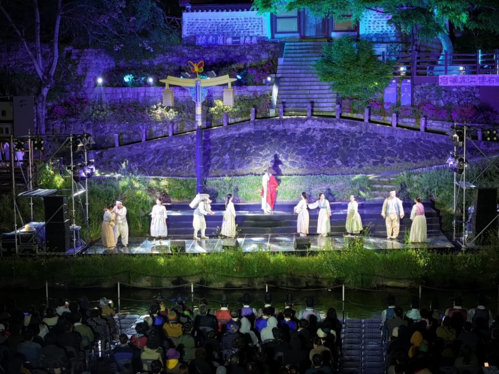 현장에서는 ‘영남루 실경 뮤지컬’과 ‘밀양강 꽃불놀이’가 핵심 프로그램으로 펼쳐진다. 밀양강 위를 오가는 LED 조명 나룻배와 수상 불꽃 연출이 어우러지며 강렬한 야간 볼거리를 제공한다.